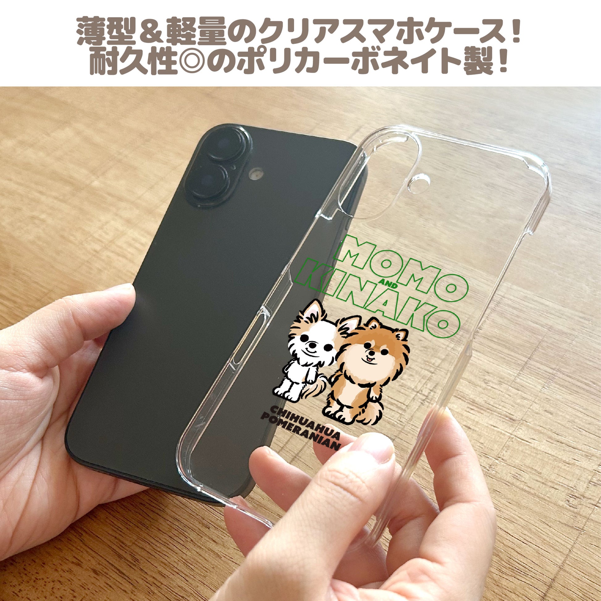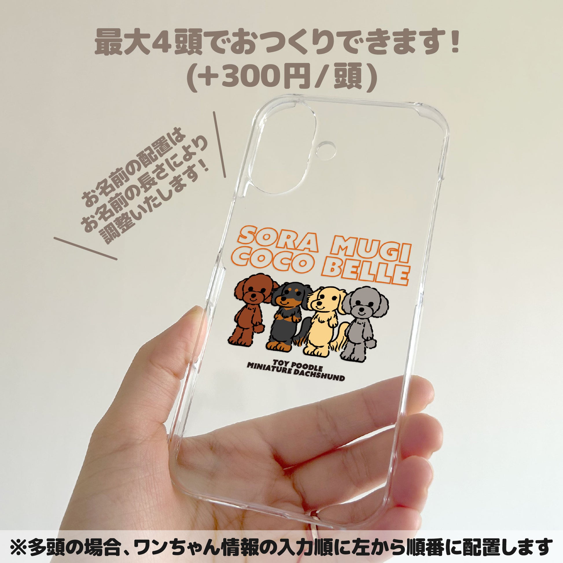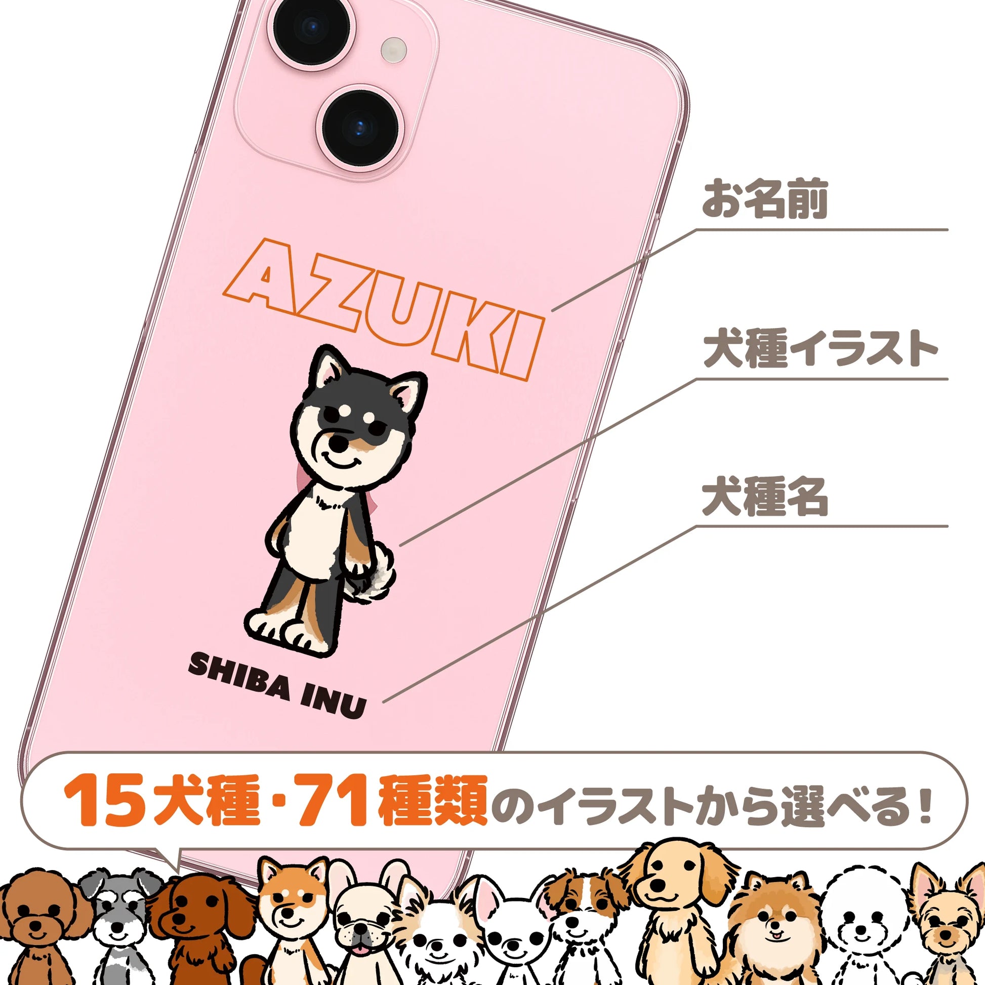 犬種イラストとお名前入りのクリアタイプのスマホケースです。