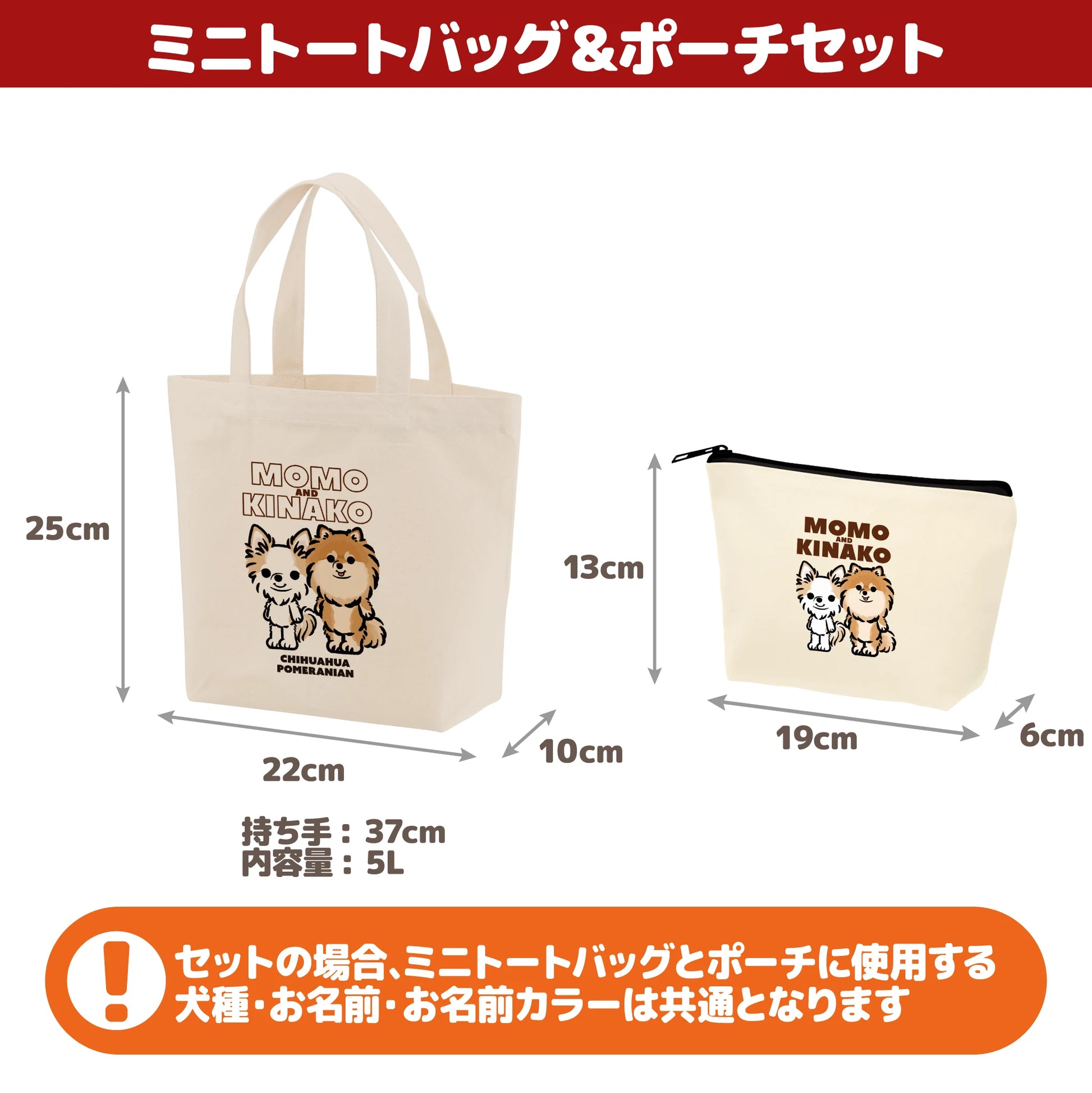※セットの場合、ミニトートバッグとポーチに使用する犬種・お名前・カラーは共通となります。