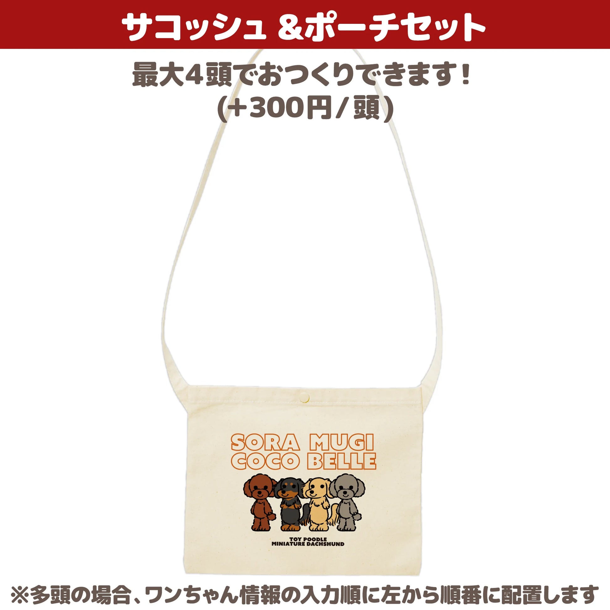 ※セットの場合、サコッシュとポーチに使用する犬種・お名前・カラーは共通となります。